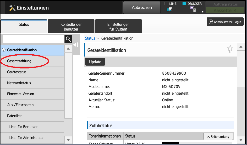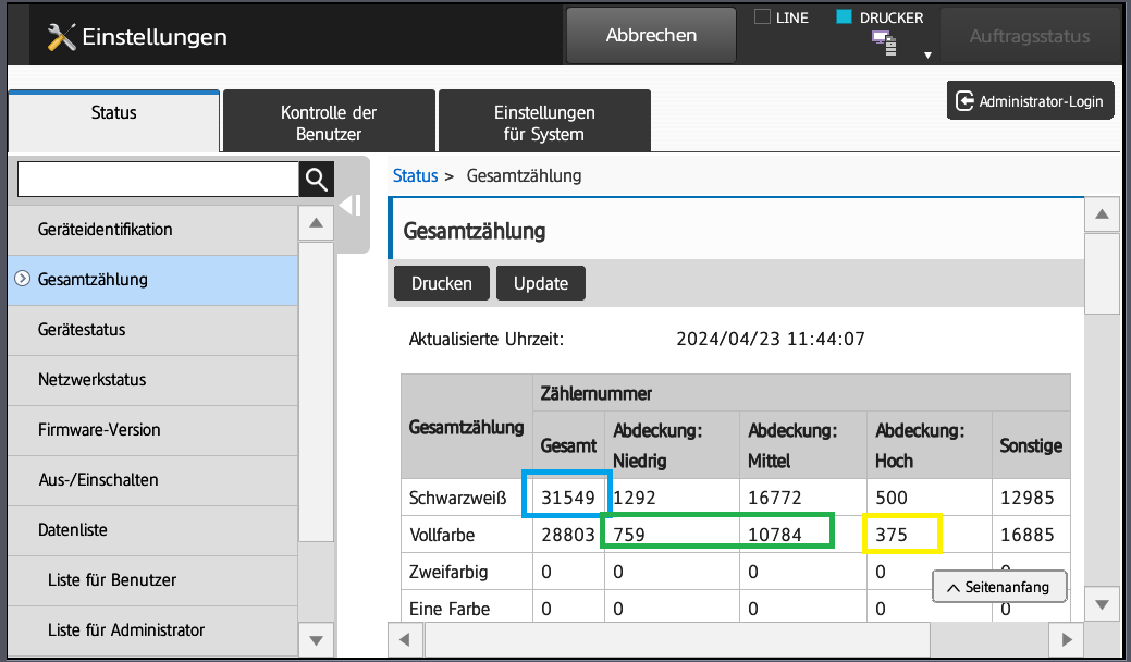 Zähler color ab 10% Farbdeckung: siehe Abdeckung Hoch (hier gelb markiert)